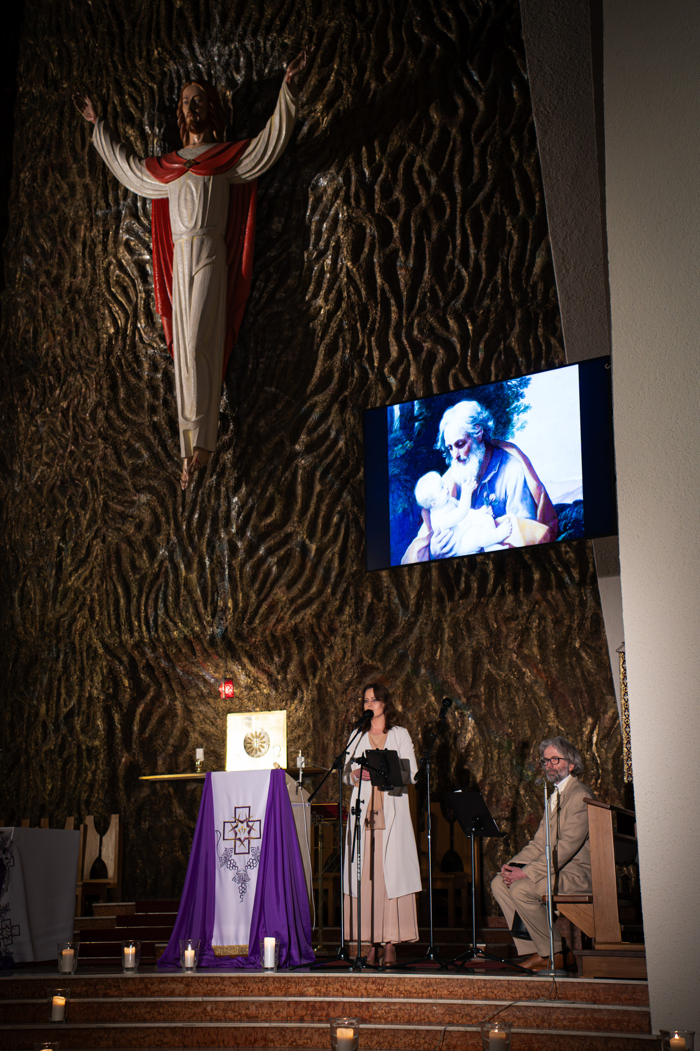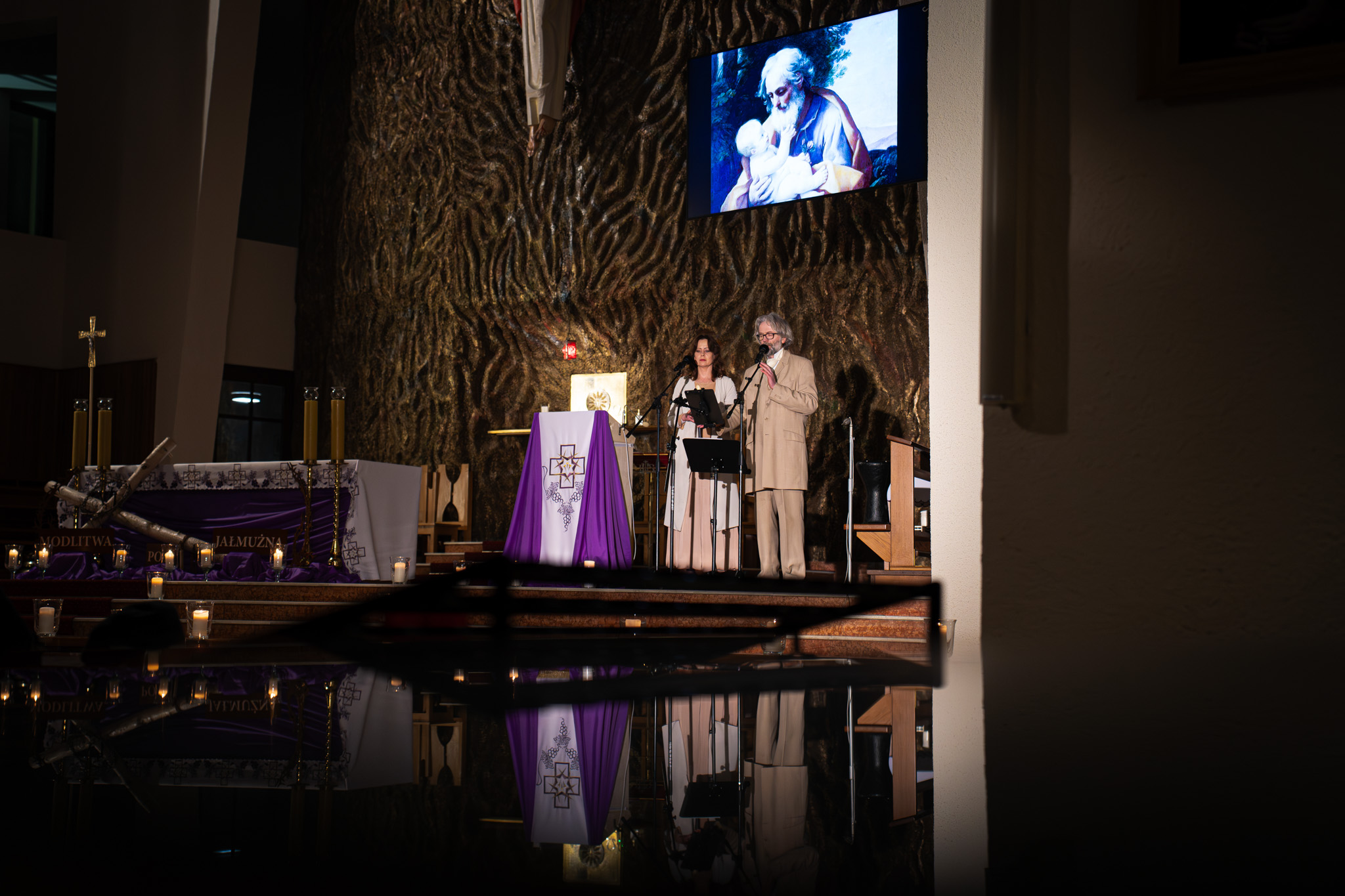 Na scenie wystąpili Kinga i Arkadiusz Głogowscy, założyciele i artyści Teatru GROT. Program koncertu obejmował szeroki przekrój utworów o tematyce sakralnej: hymny i modlitwy wywodzące się ze średniowiecza, pieśni z późniejszych epok, kompozycje współczesne.