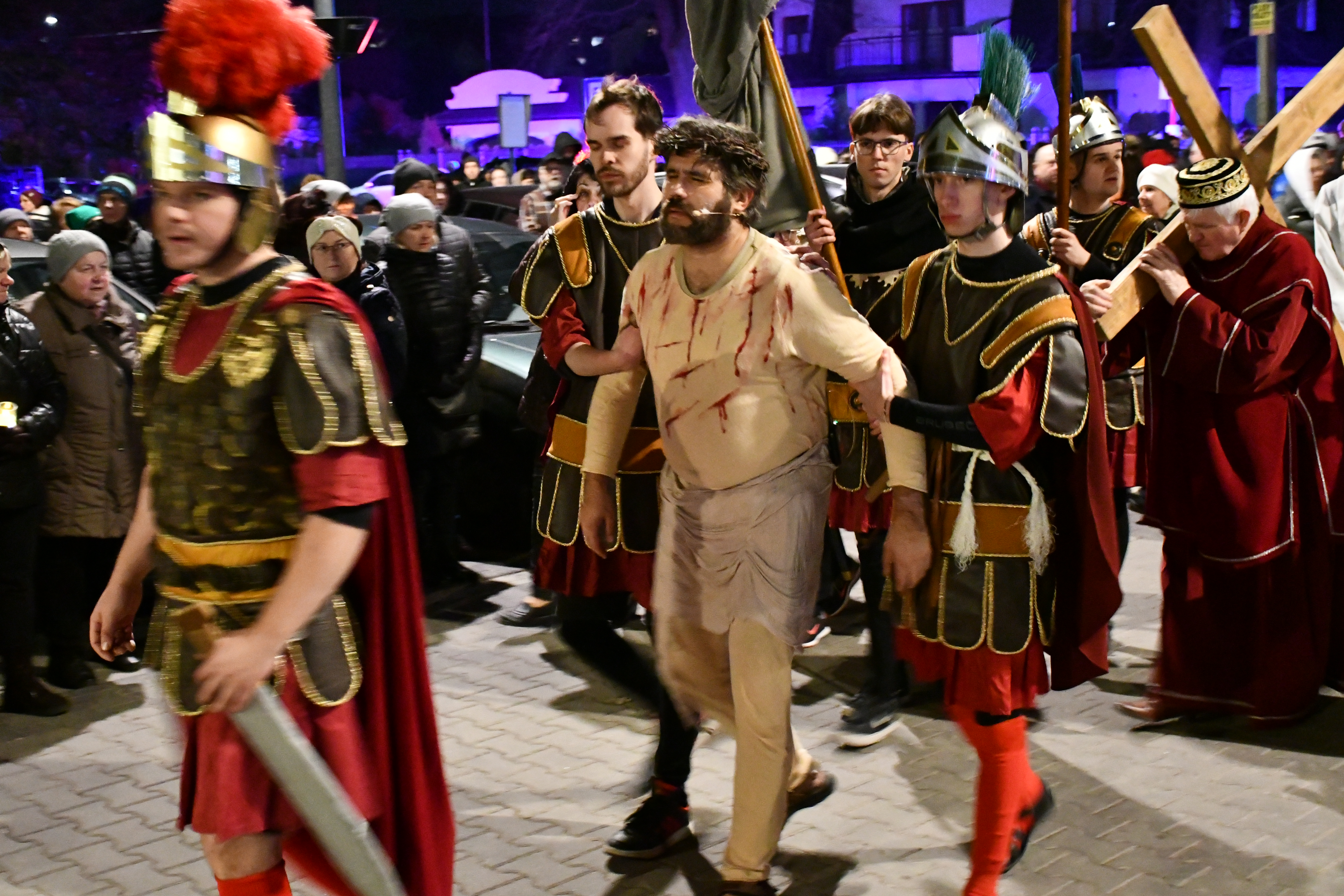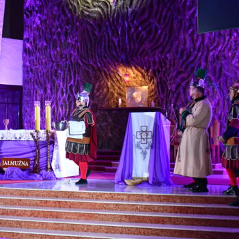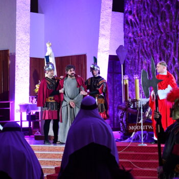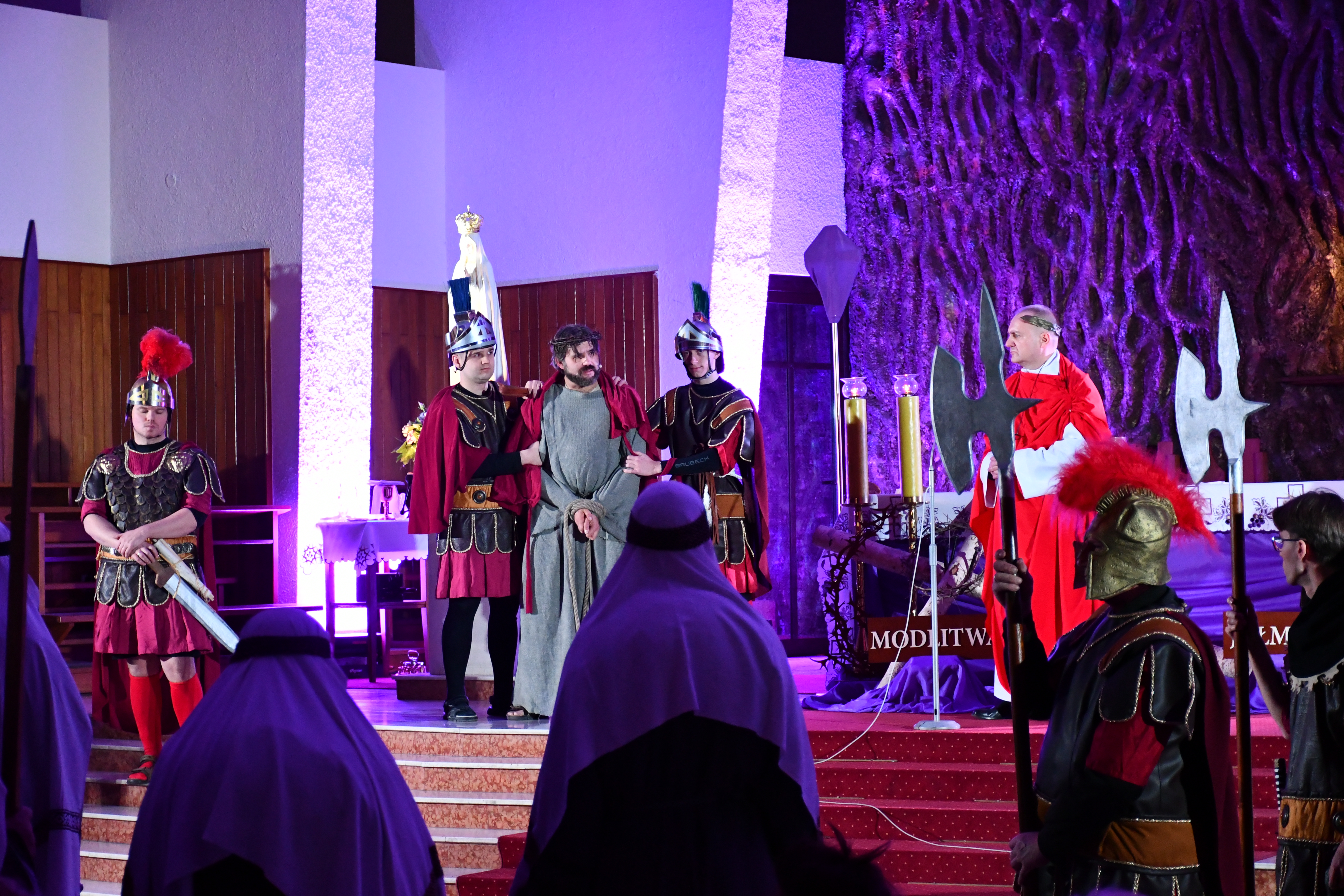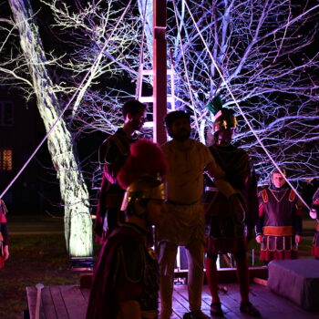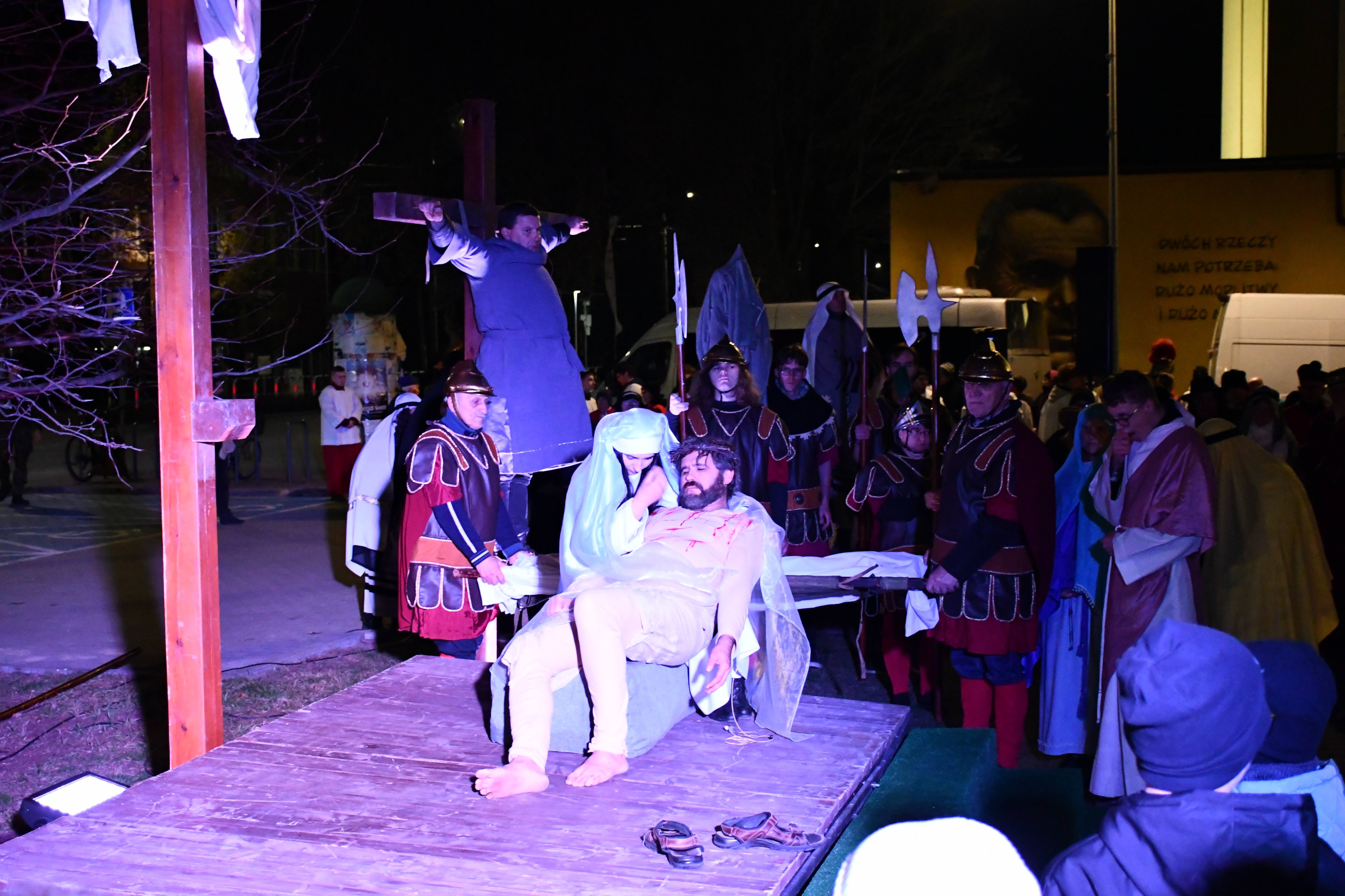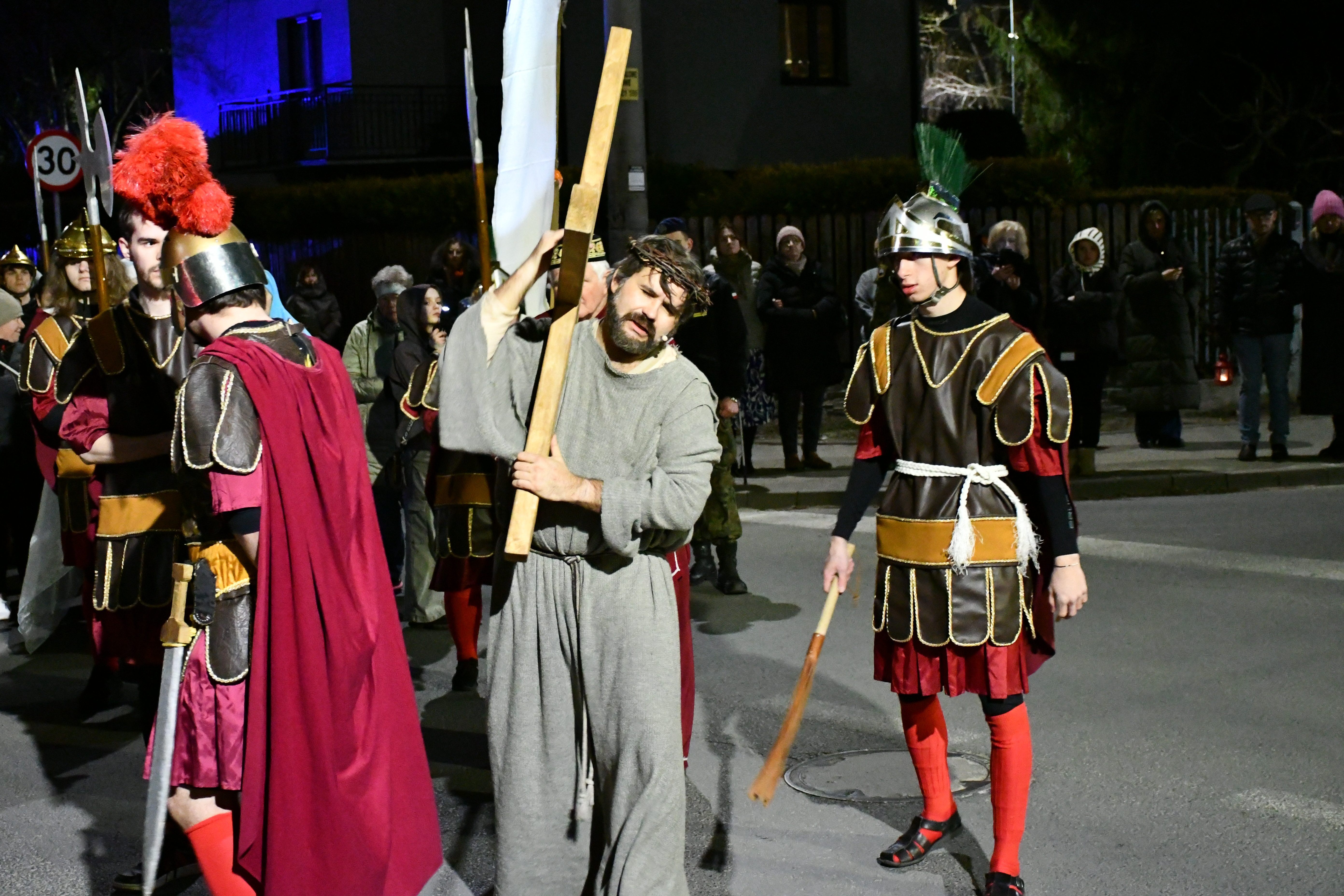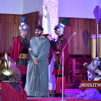 Rozważania przybrały wyjątkową formę, ponieważ modlitwa połączona była z misterium. Aktorzy z ogromnym zaangażowaniem odgrywali poszczególne sceny z Drogi Krzyżowej, co pozwoliło zgromadzonym jeszcze pełniej doświadczyć i przeżyć tajemnicę męki Chrystusa. Oglądanie tych dramatycznych wydarzeń przeniesionych bezpośrednio na ulice naszego miasta niezwykle mocno potęgowało modlitewną zadumę.