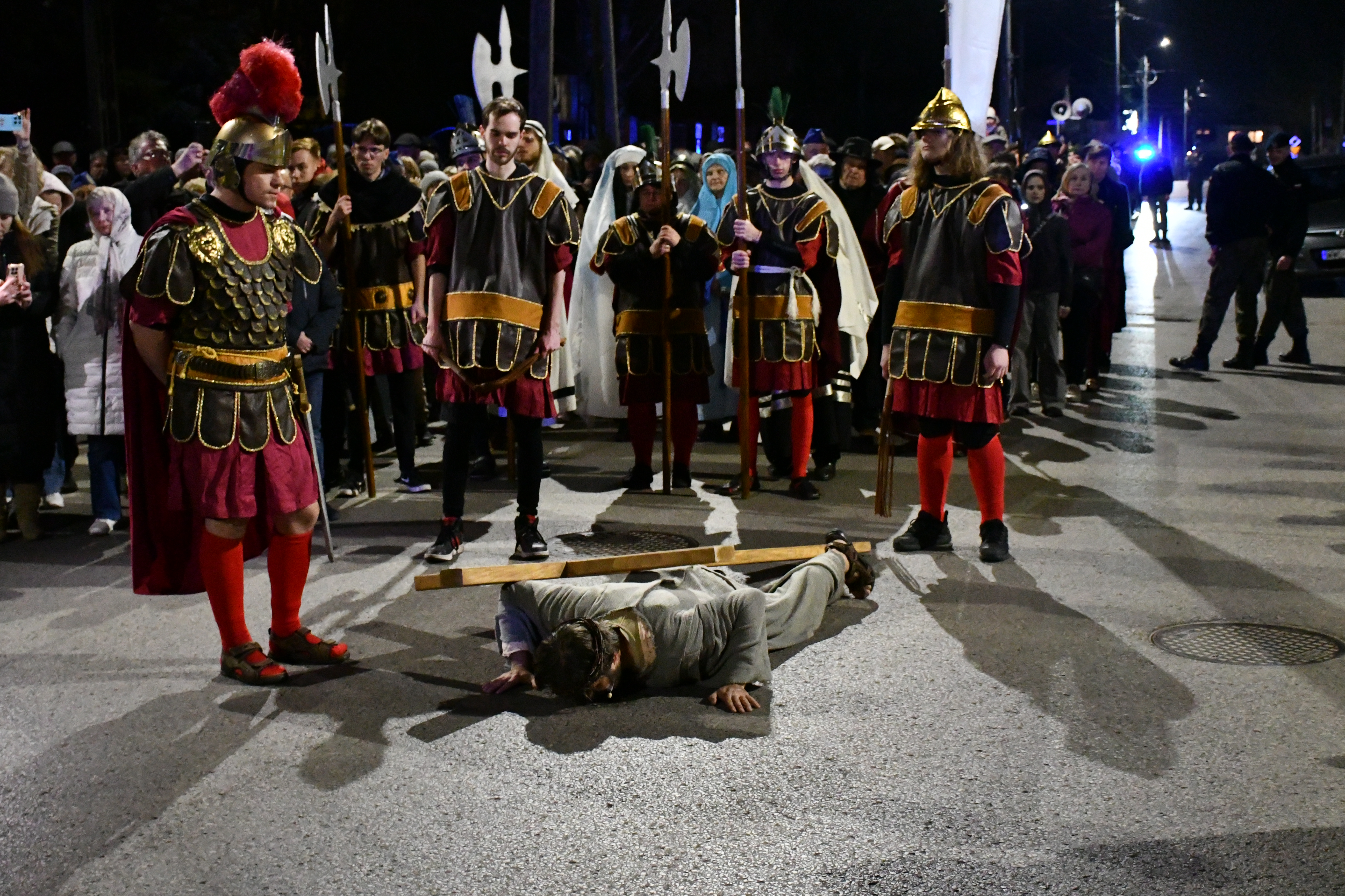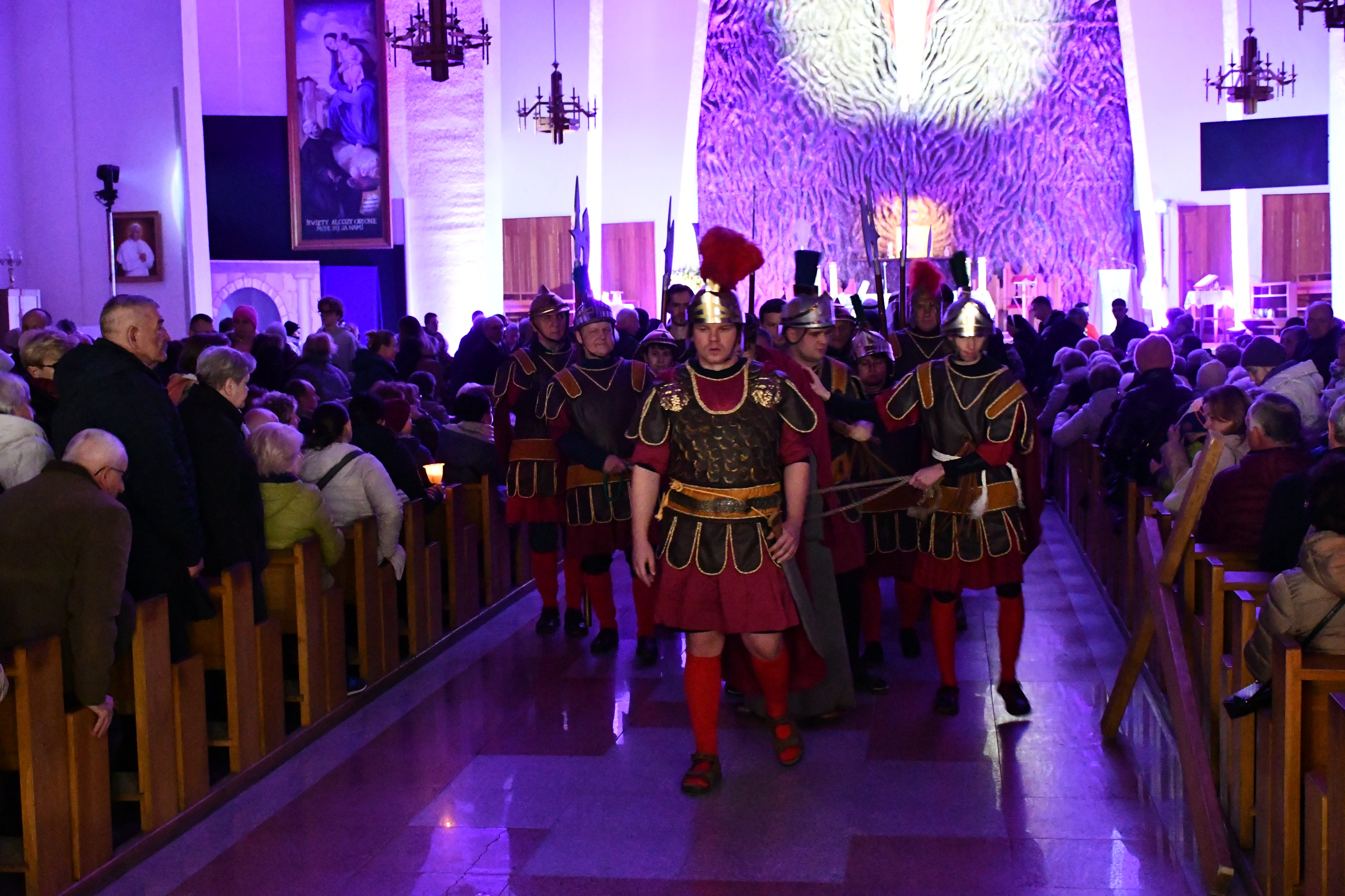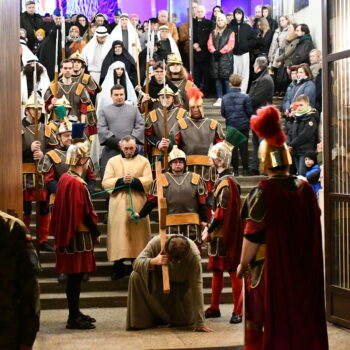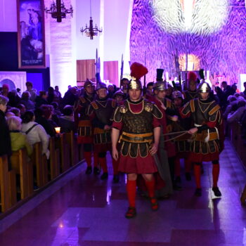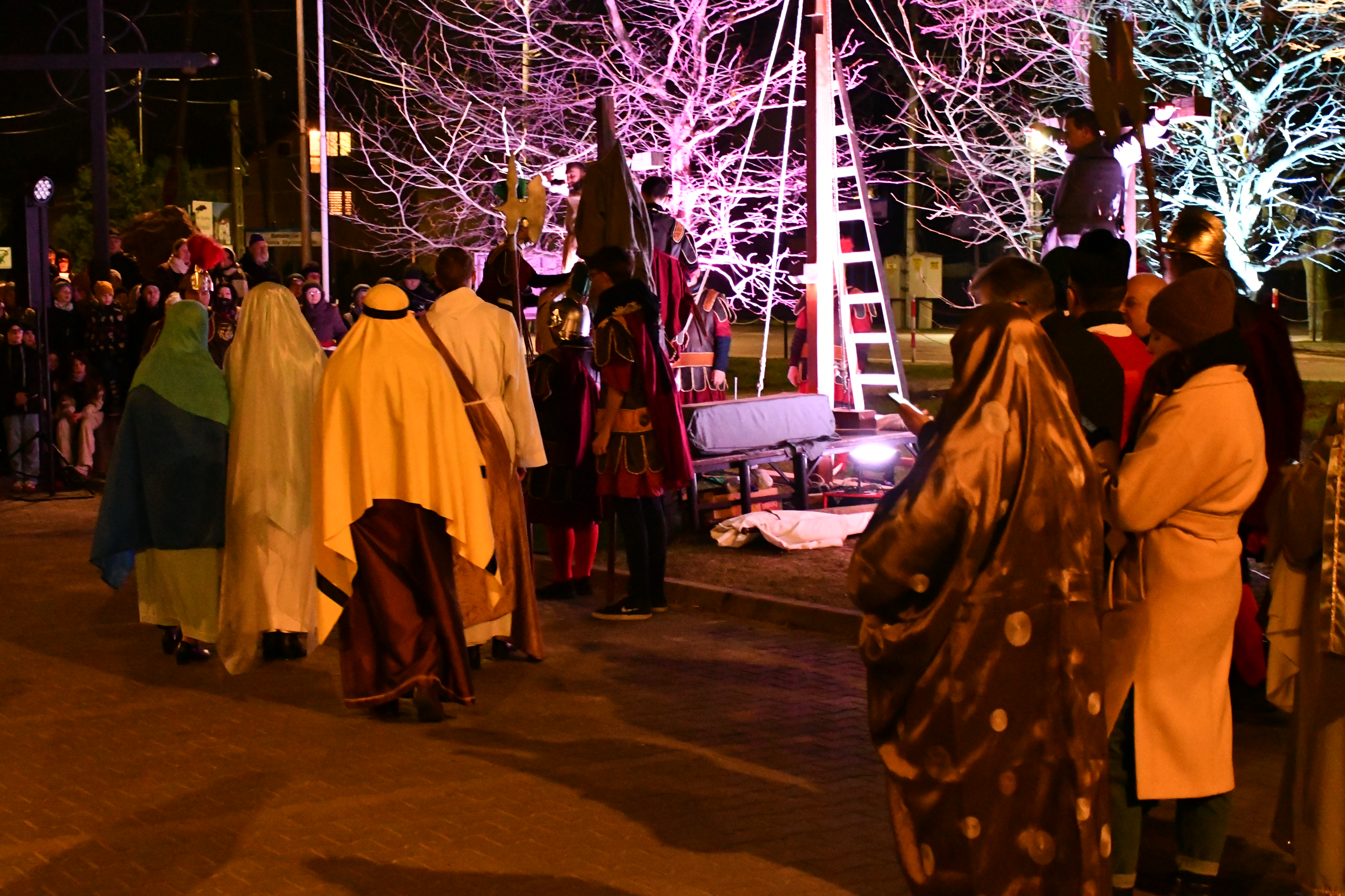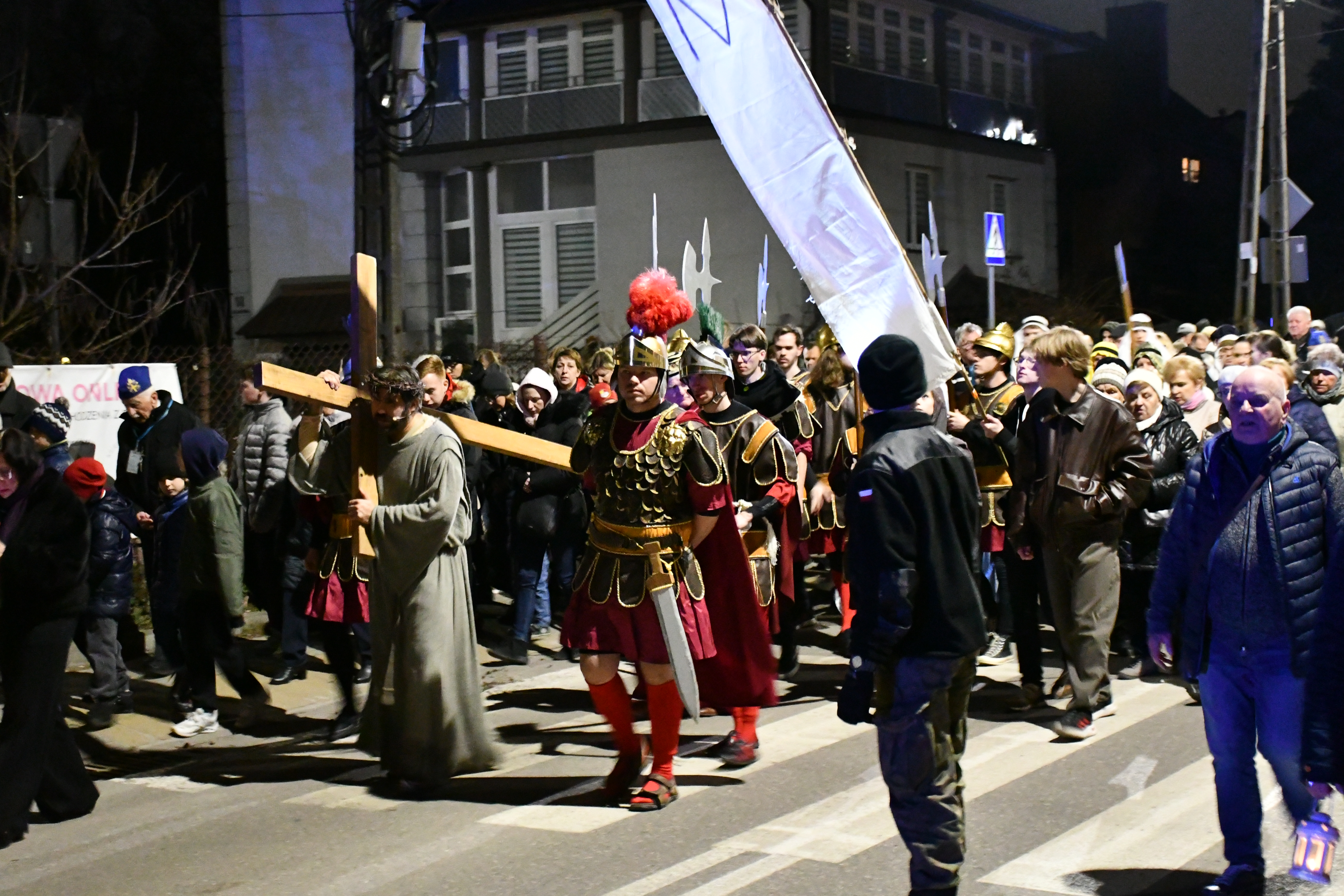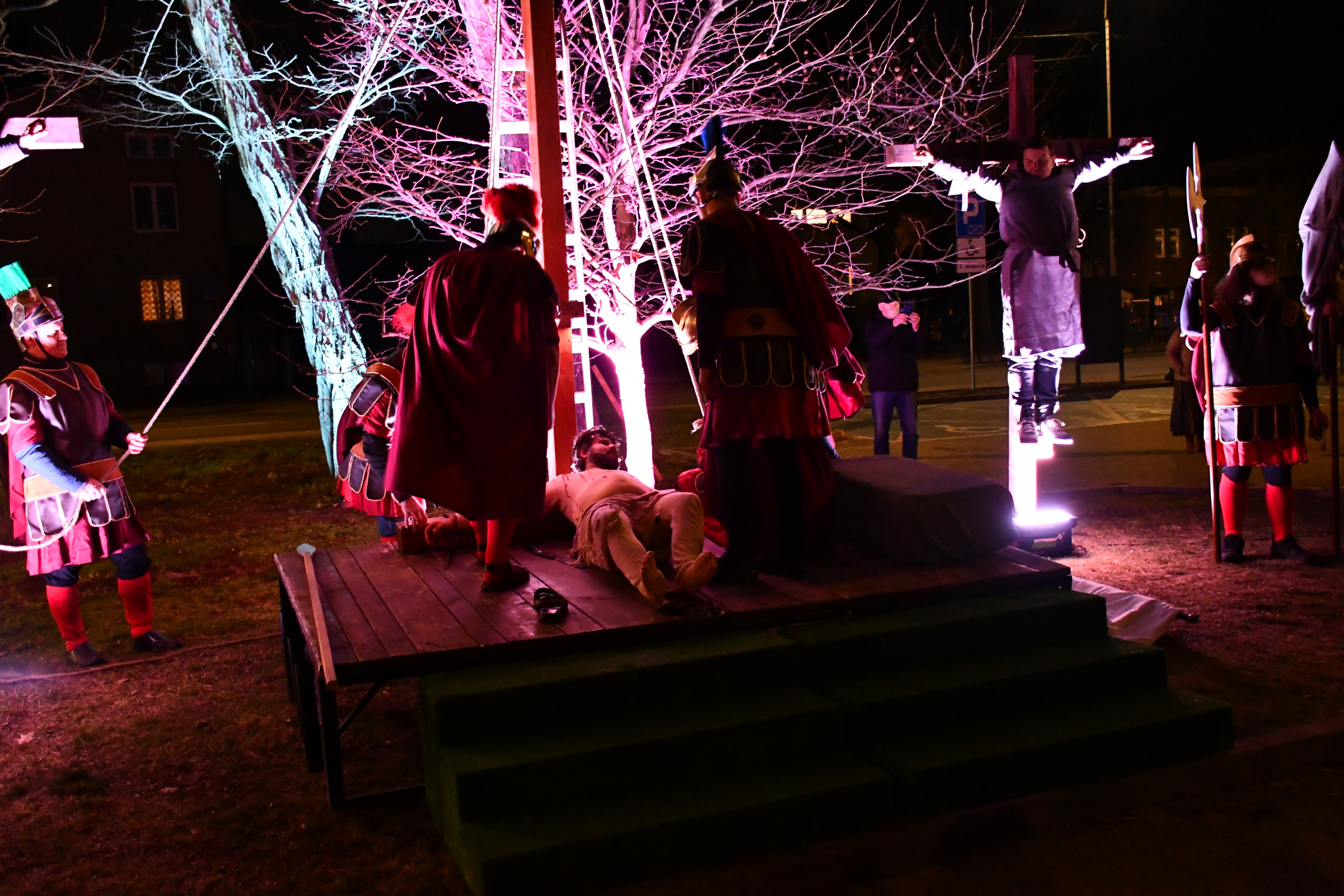 Rozważania przybrały wyjątkową formę, ponieważ modlitwa połączona była z misterium. Aktorzy z ogromnym zaangażowaniem odgrywali poszczególne sceny z Drogi Krzyżowej, co pozwoliło zgromadzonym jeszcze pełniej doświadczyć i przeżyć tajemnicę męki Chrystusa. Oglądanie tych dramatycznych wydarzeń przeniesionych bezpośrednio na ulice naszego miasta niezwykle mocno potęgowało modlitewną zadumę.