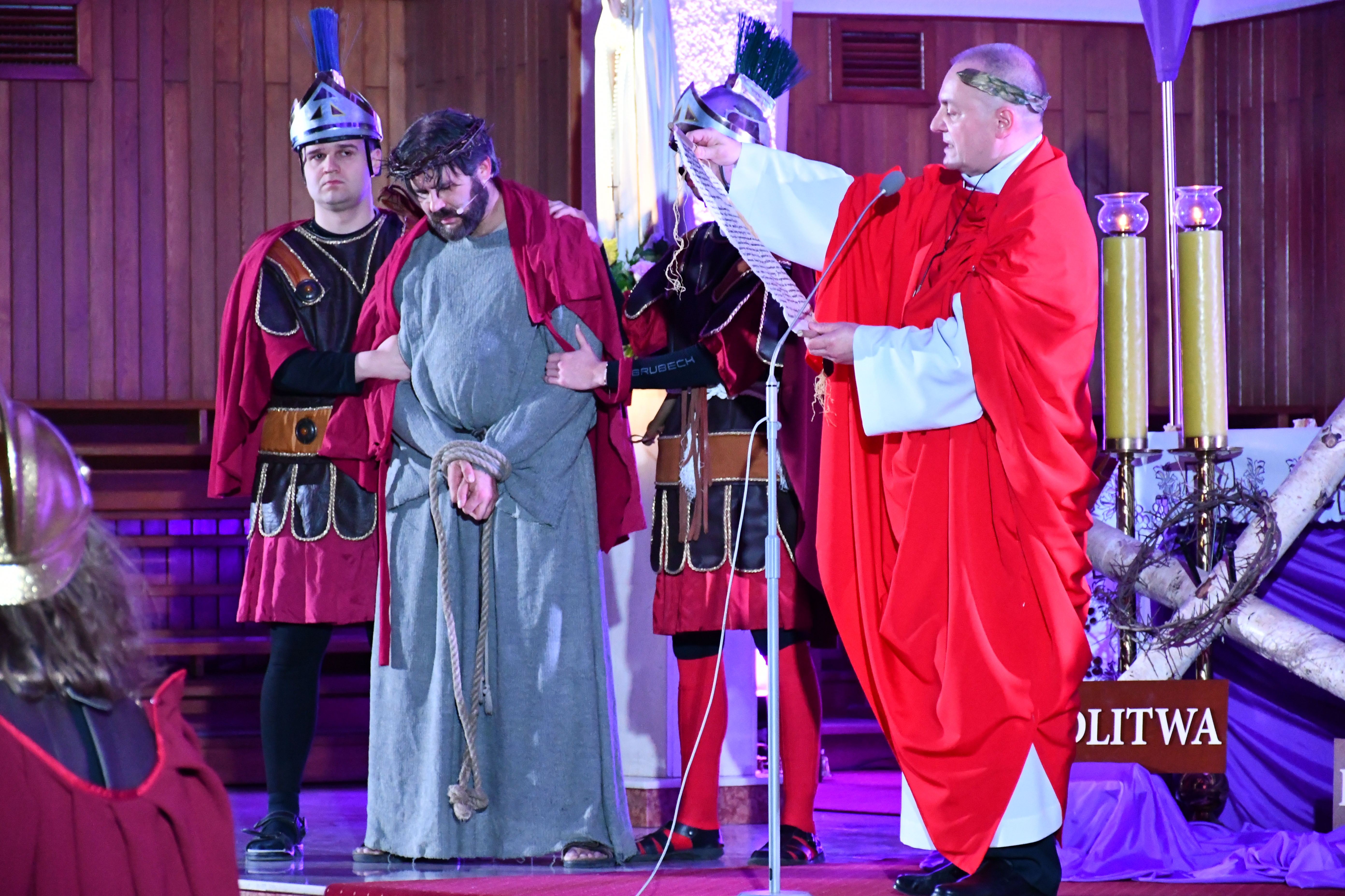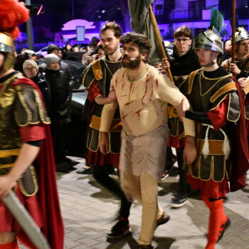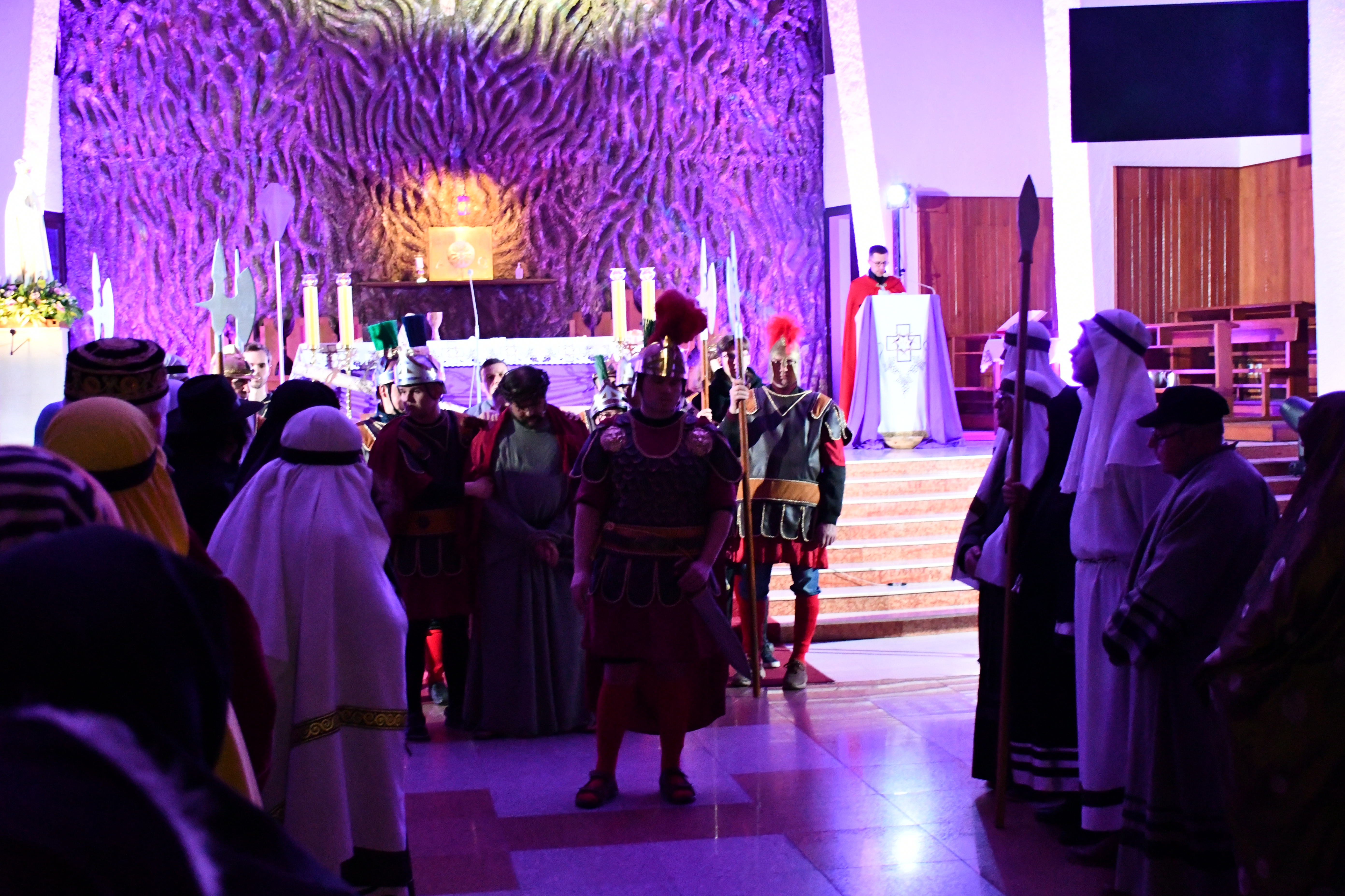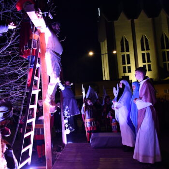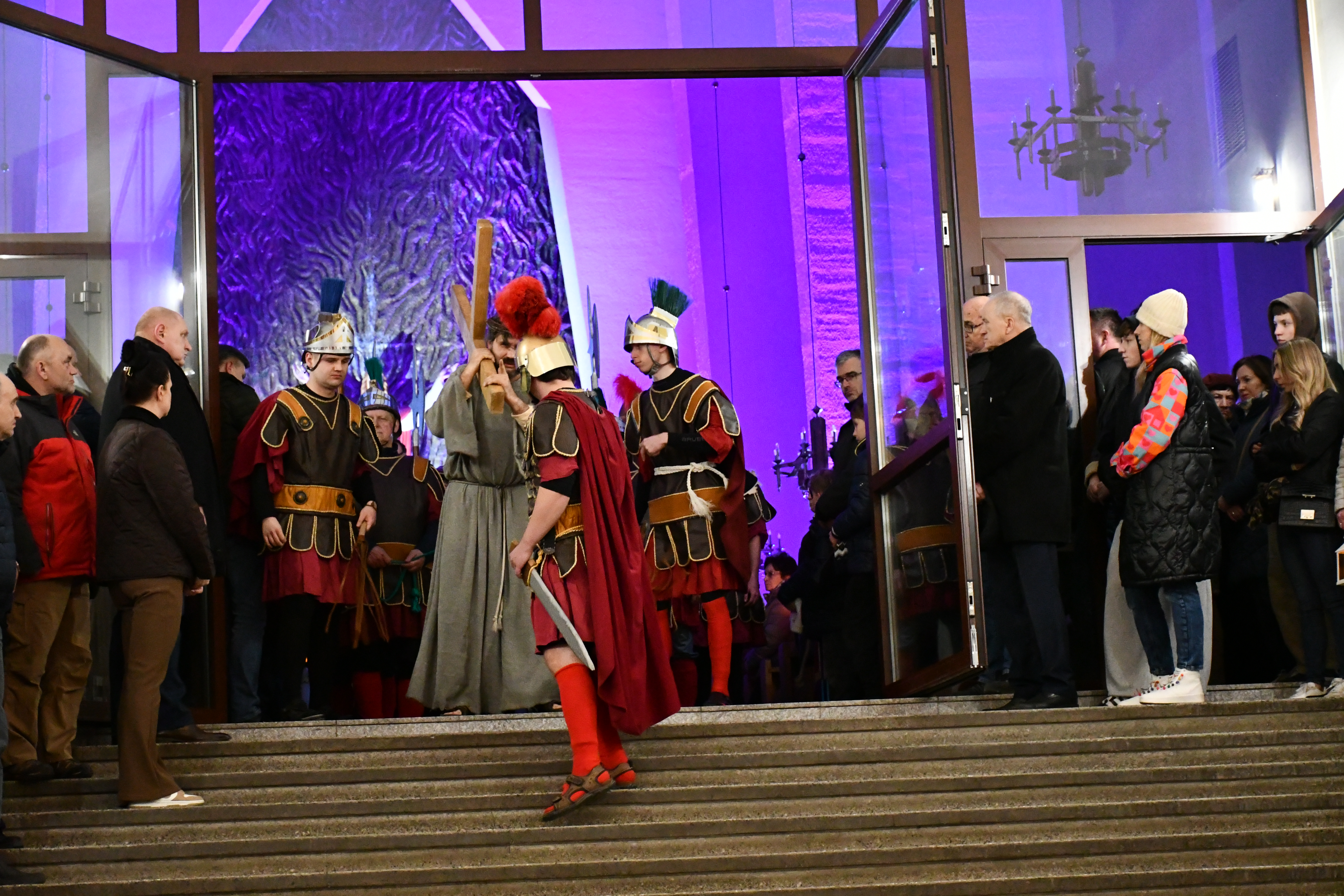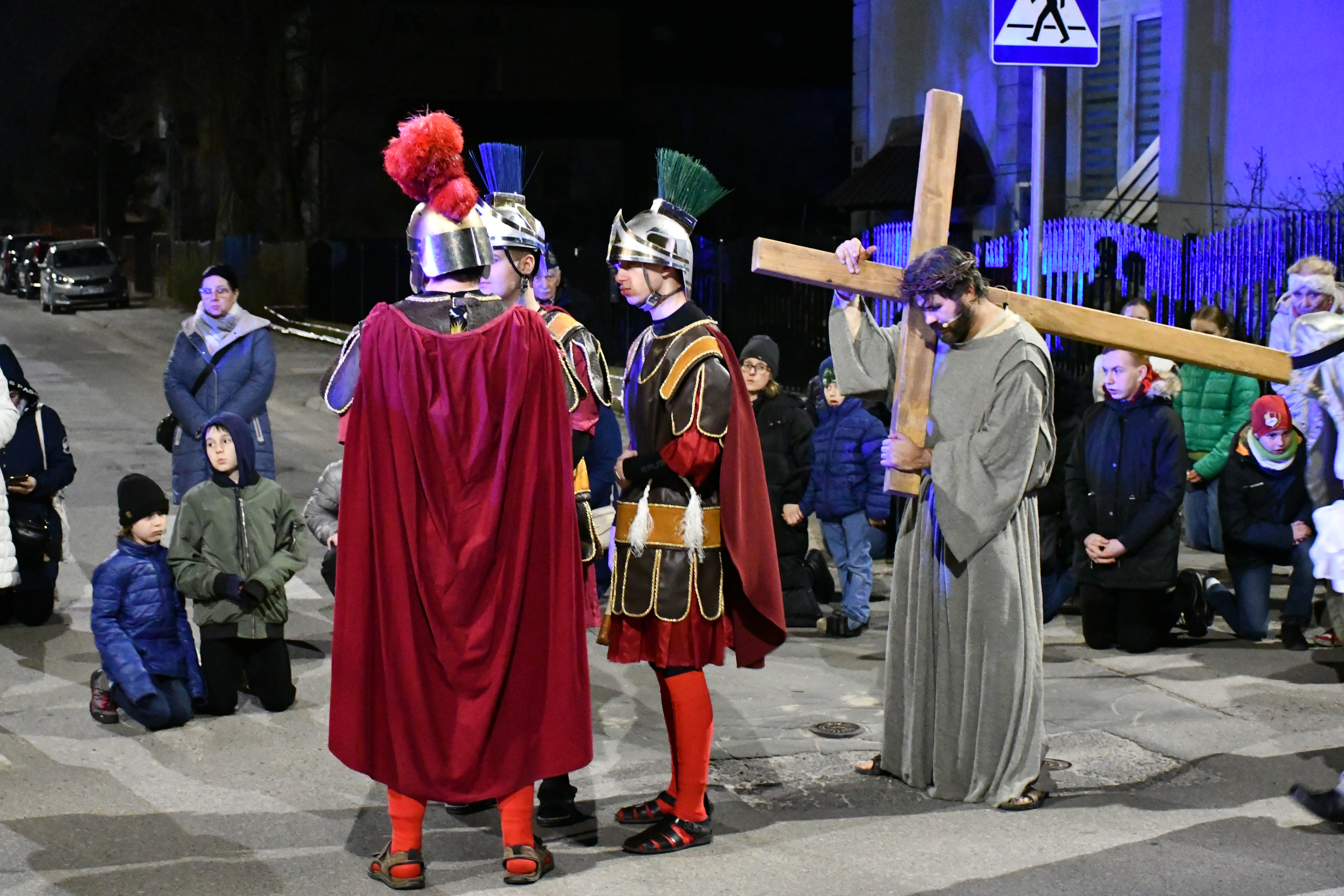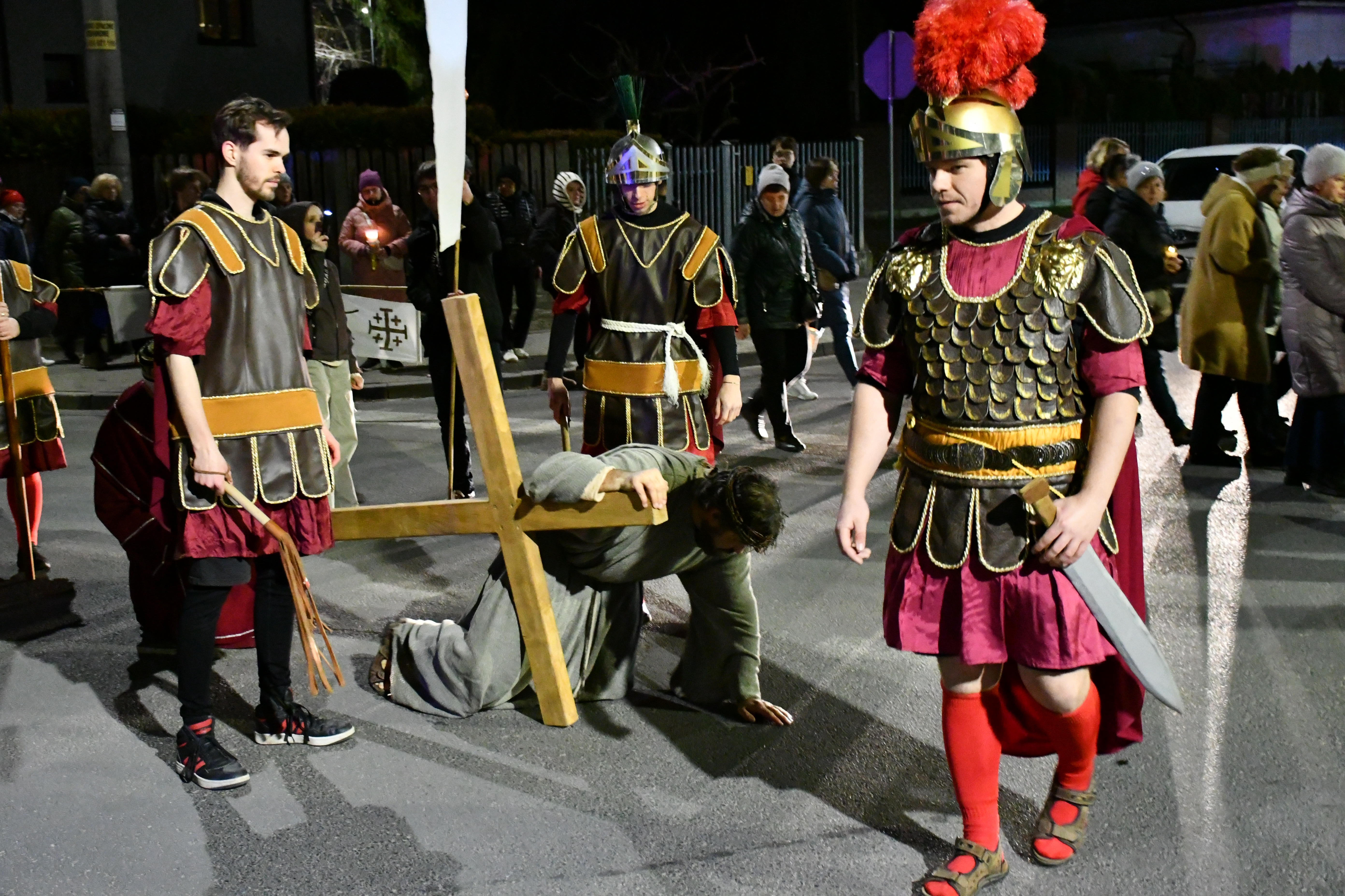 Rozważania przybrały wyjątkową formę, ponieważ modlitwa połączona była z misterium. Aktorzy z ogromnym zaangażowaniem odgrywali poszczególne sceny z Drogi Krzyżowej, co pozwoliło zgromadzonym jeszcze pełniej doświadczyć i przeżyć tajemnicę męki Chrystusa. Oglądanie tych dramatycznych wydarzeń przeniesionych bezpośrednio na ulice naszego miasta niezwykle mocno potęgowało modlitewną zadumę.