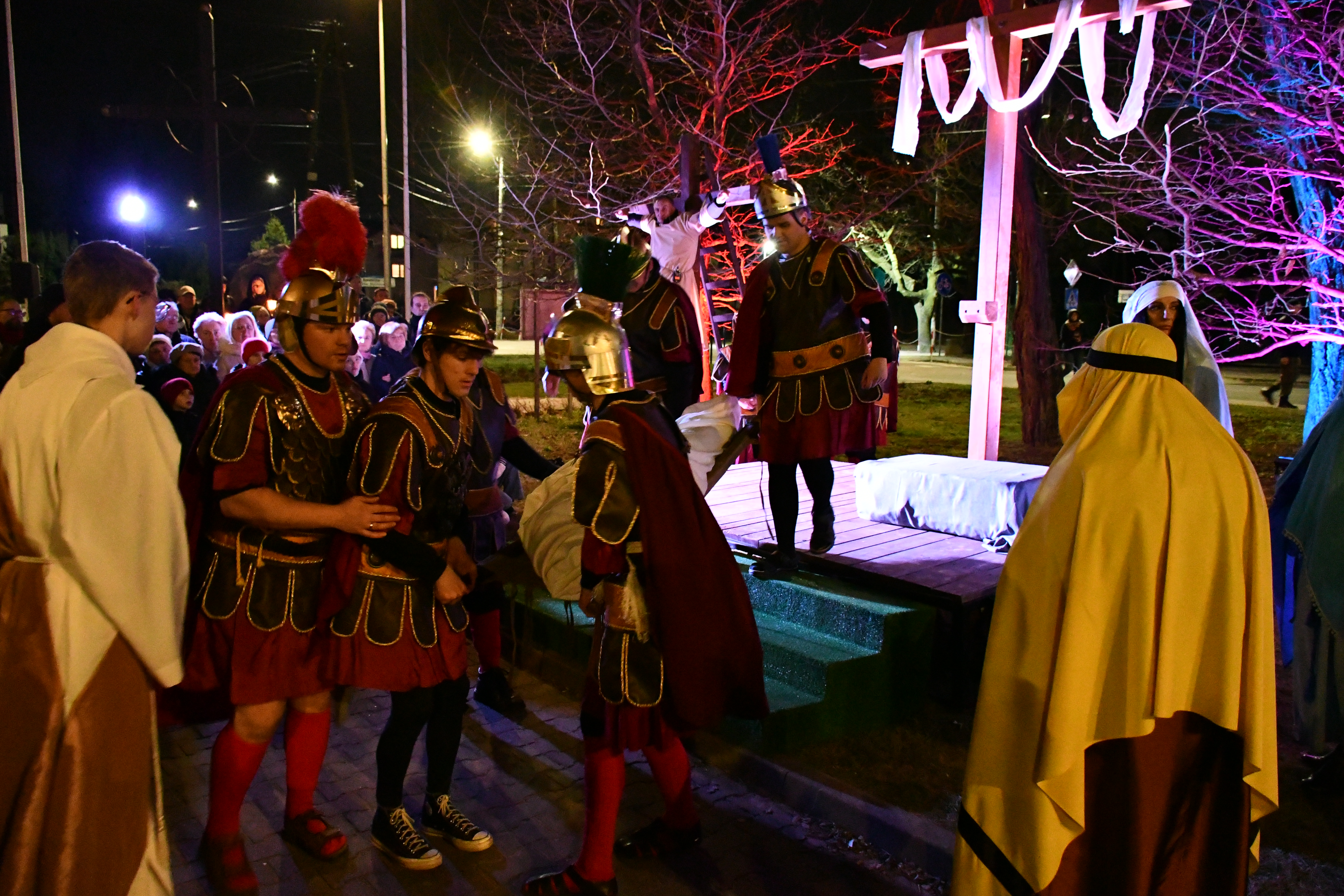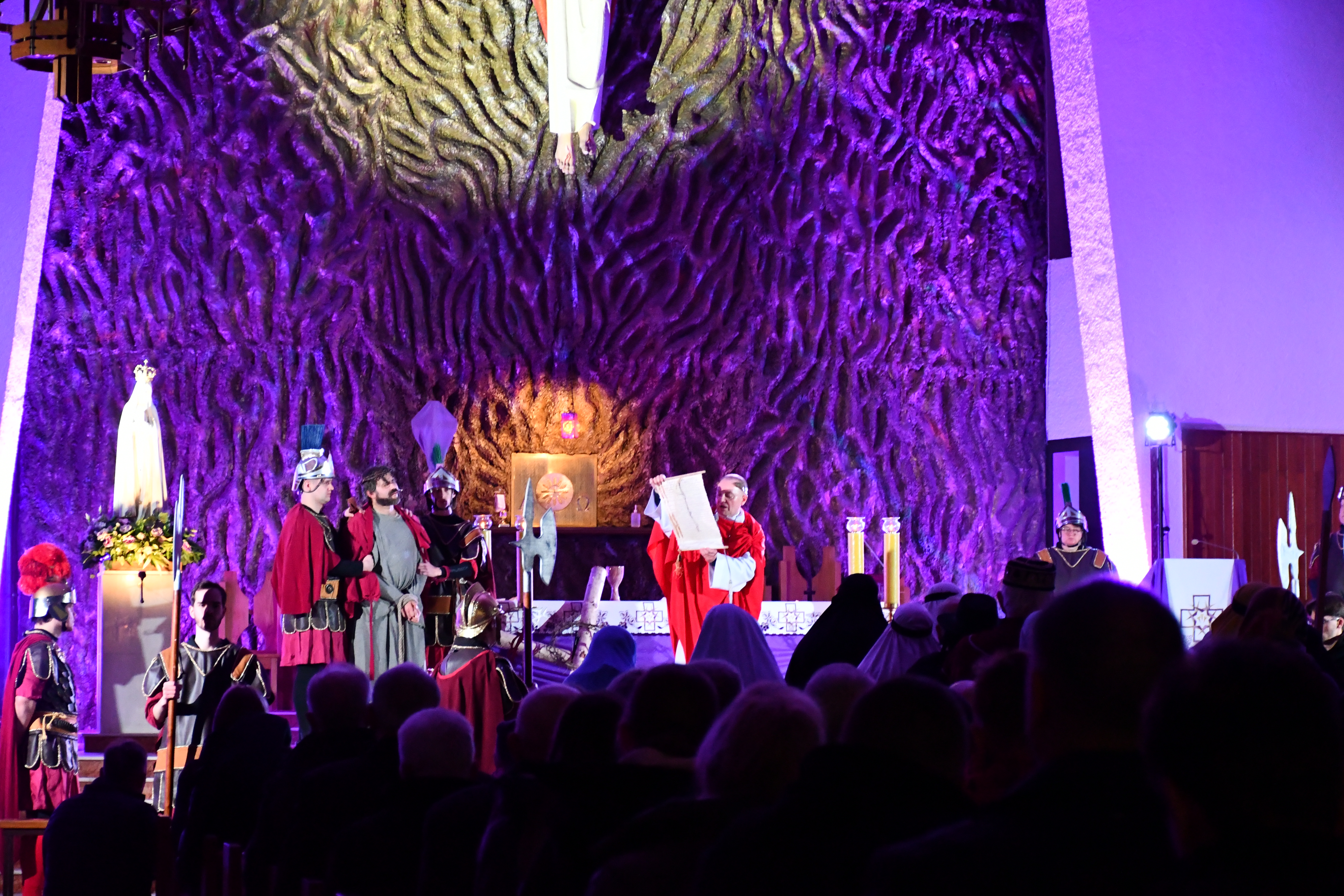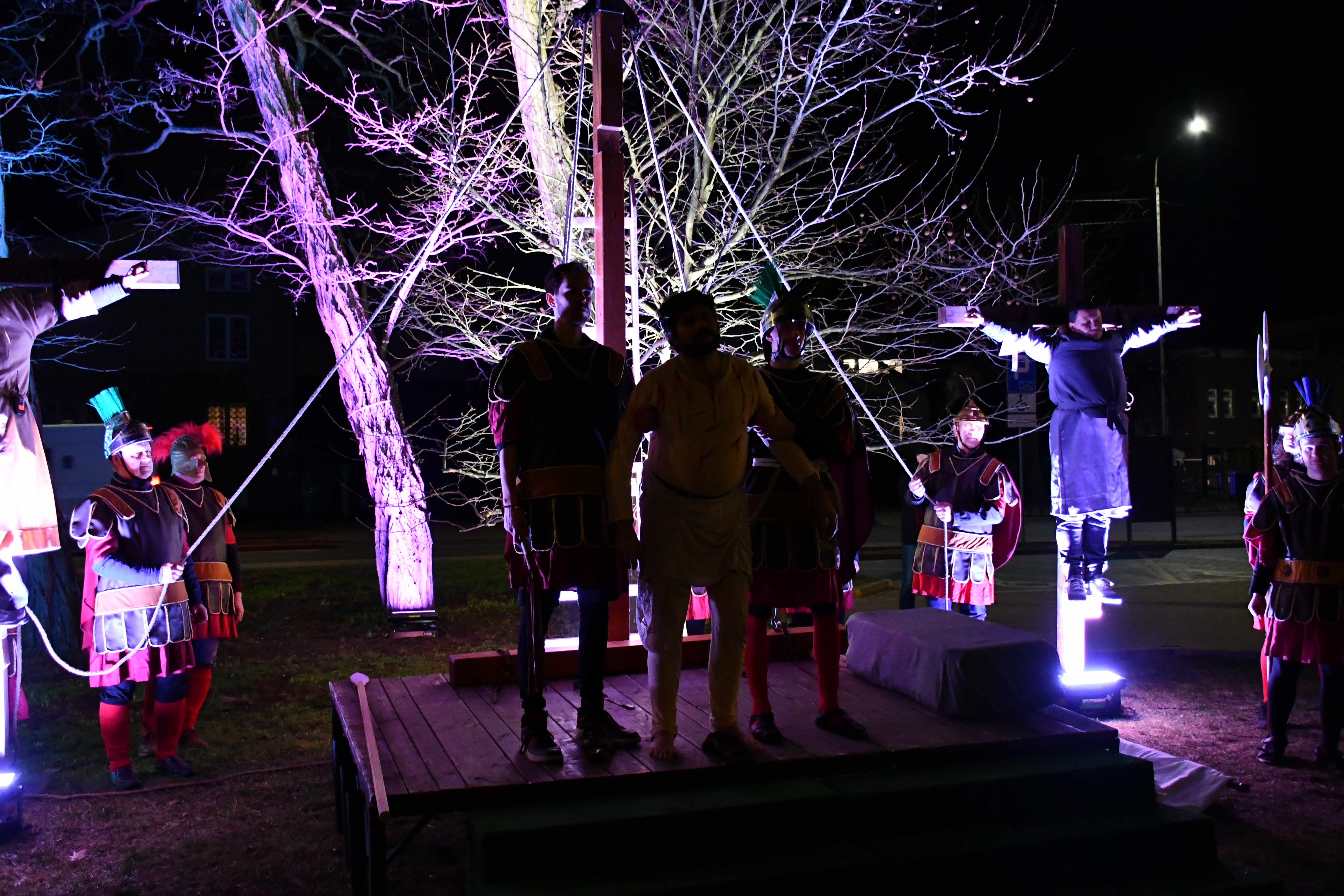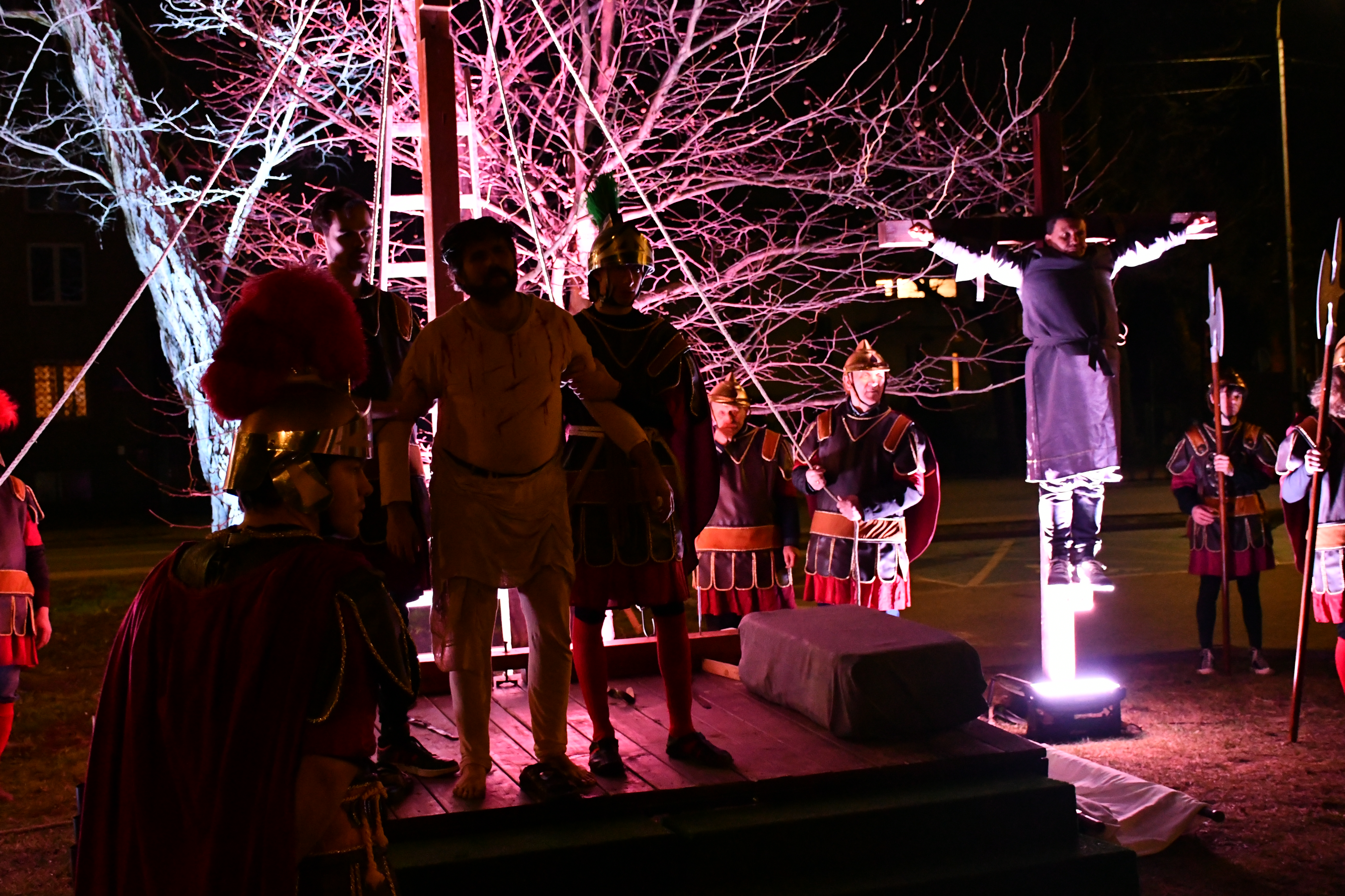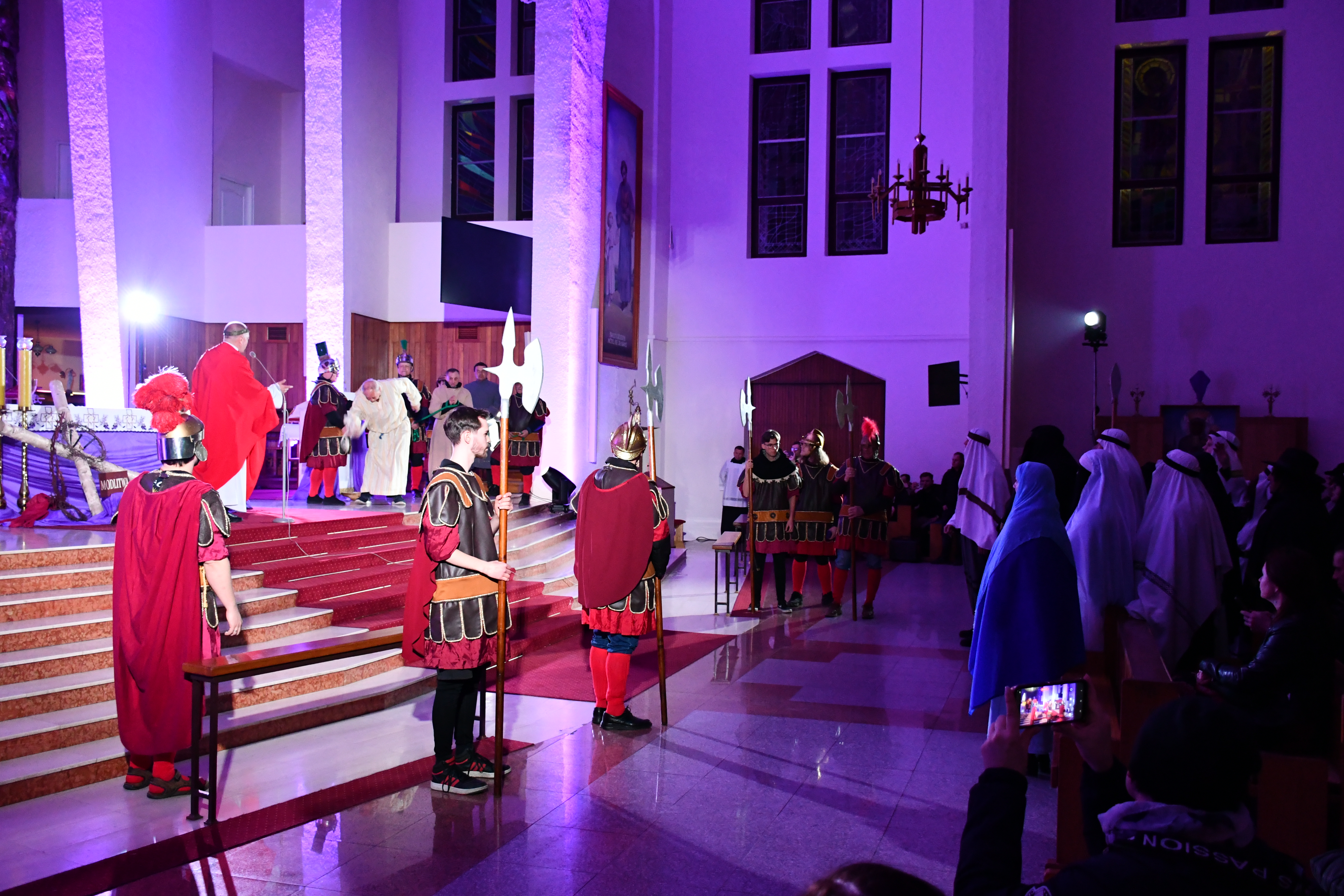 Rozważania przybrały wyjątkową formę, ponieważ modlitwa połączona była z misterium. Aktorzy z ogromnym zaangażowaniem odgrywali poszczególne sceny z Drogi Krzyżowej, co pozwoliło zgromadzonym jeszcze pełniej doświadczyć i przeżyć tajemnicę męki Chrystusa. Oglądanie tych dramatycznych wydarzeń przeniesionych bezpośrednio na ulice naszego miasta niezwykle mocno potęgowało modlitewną zadumę.