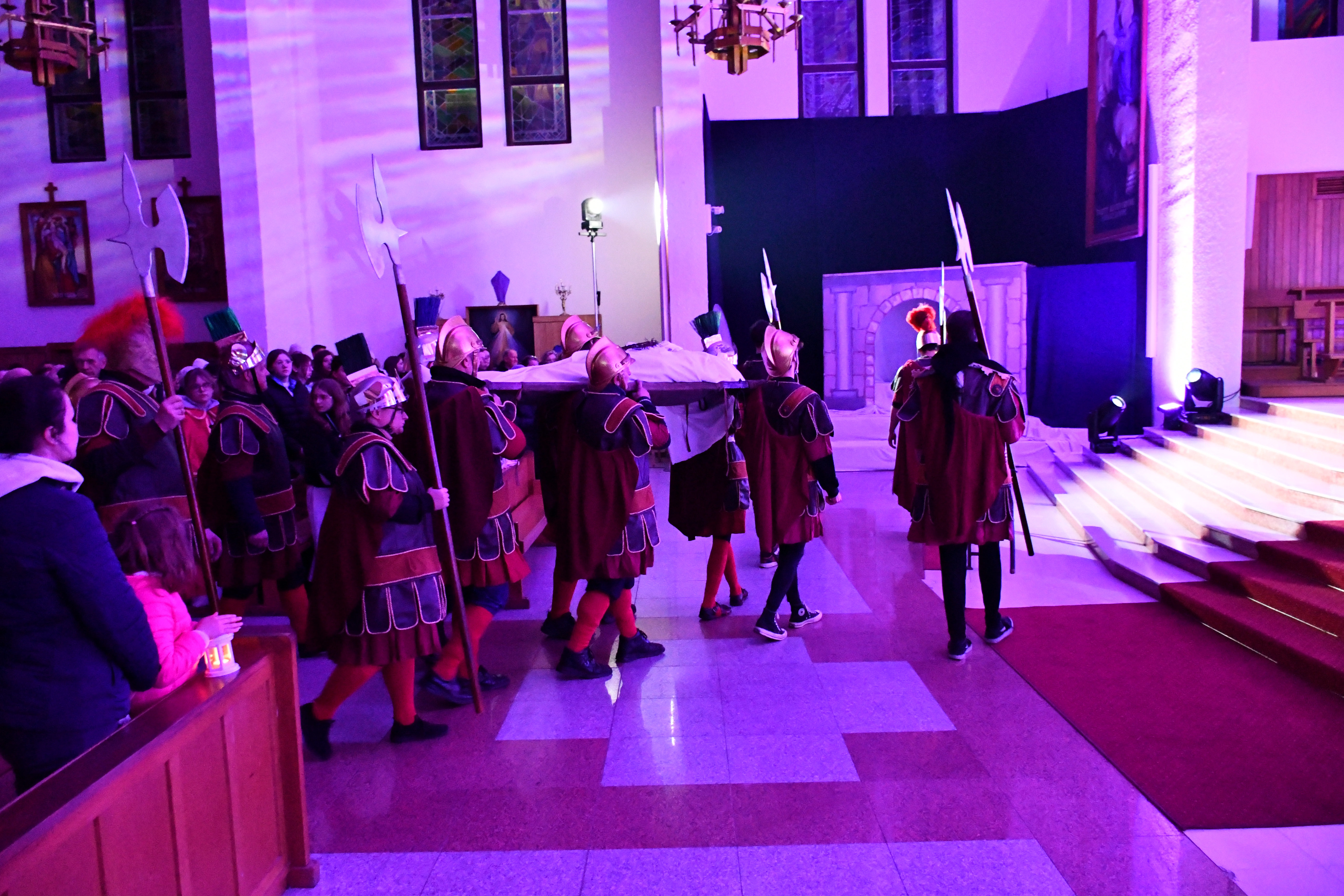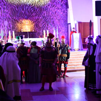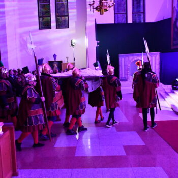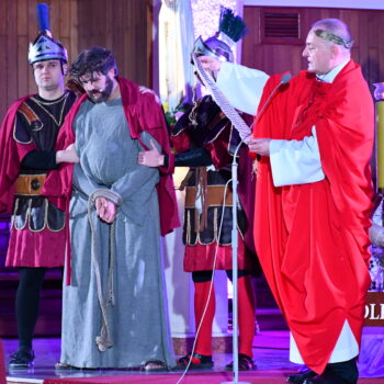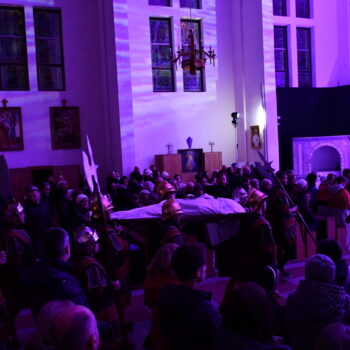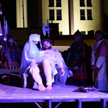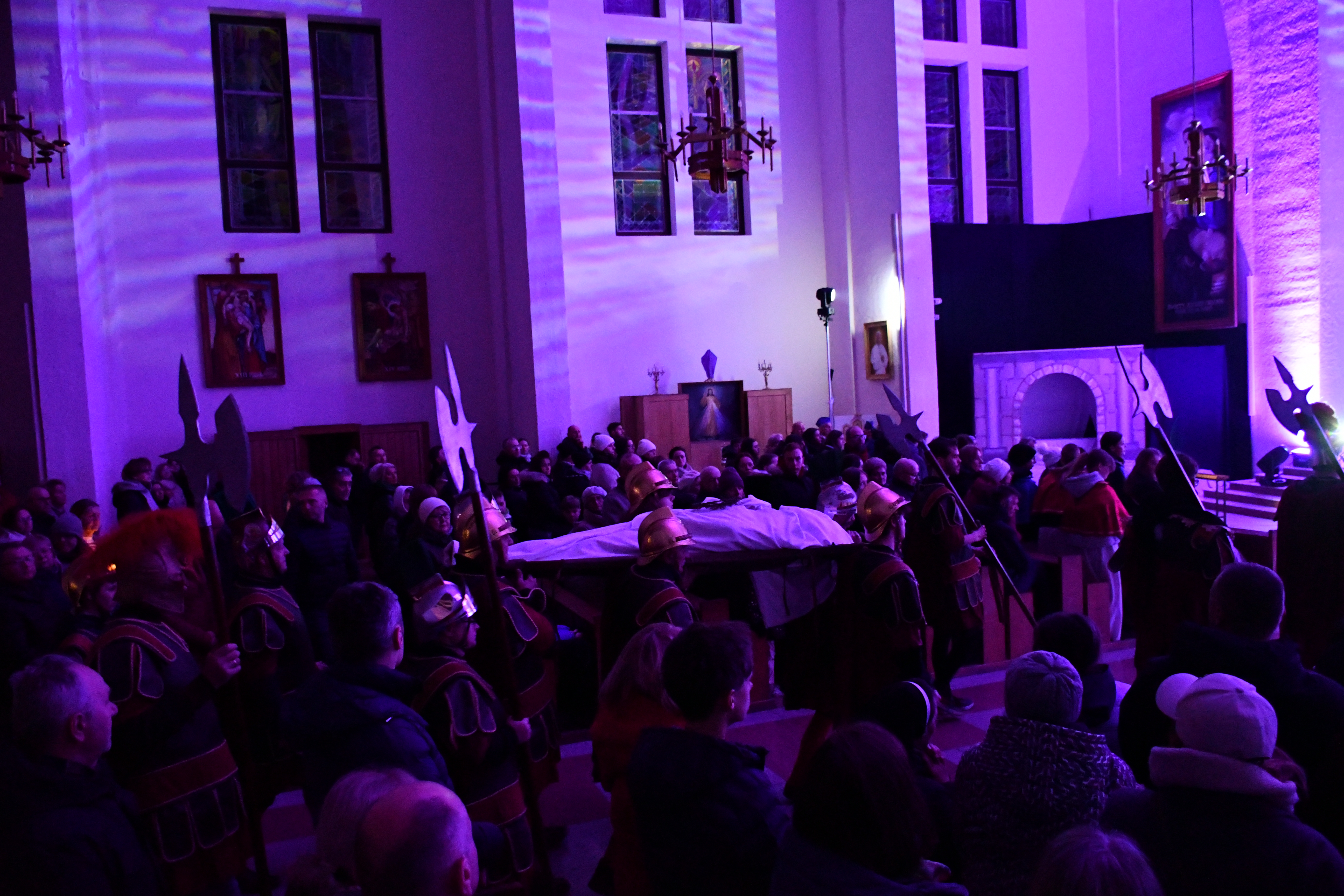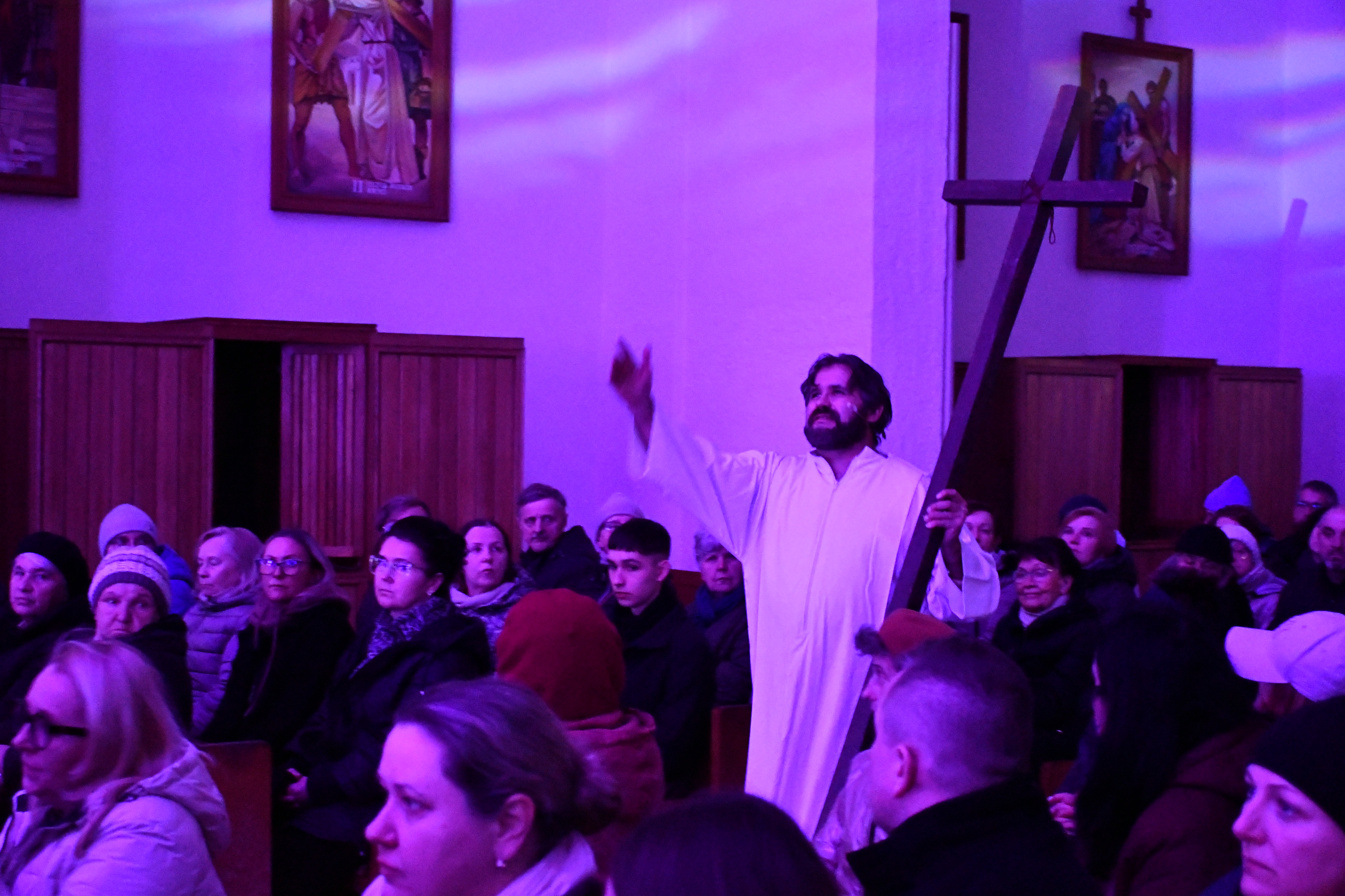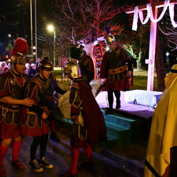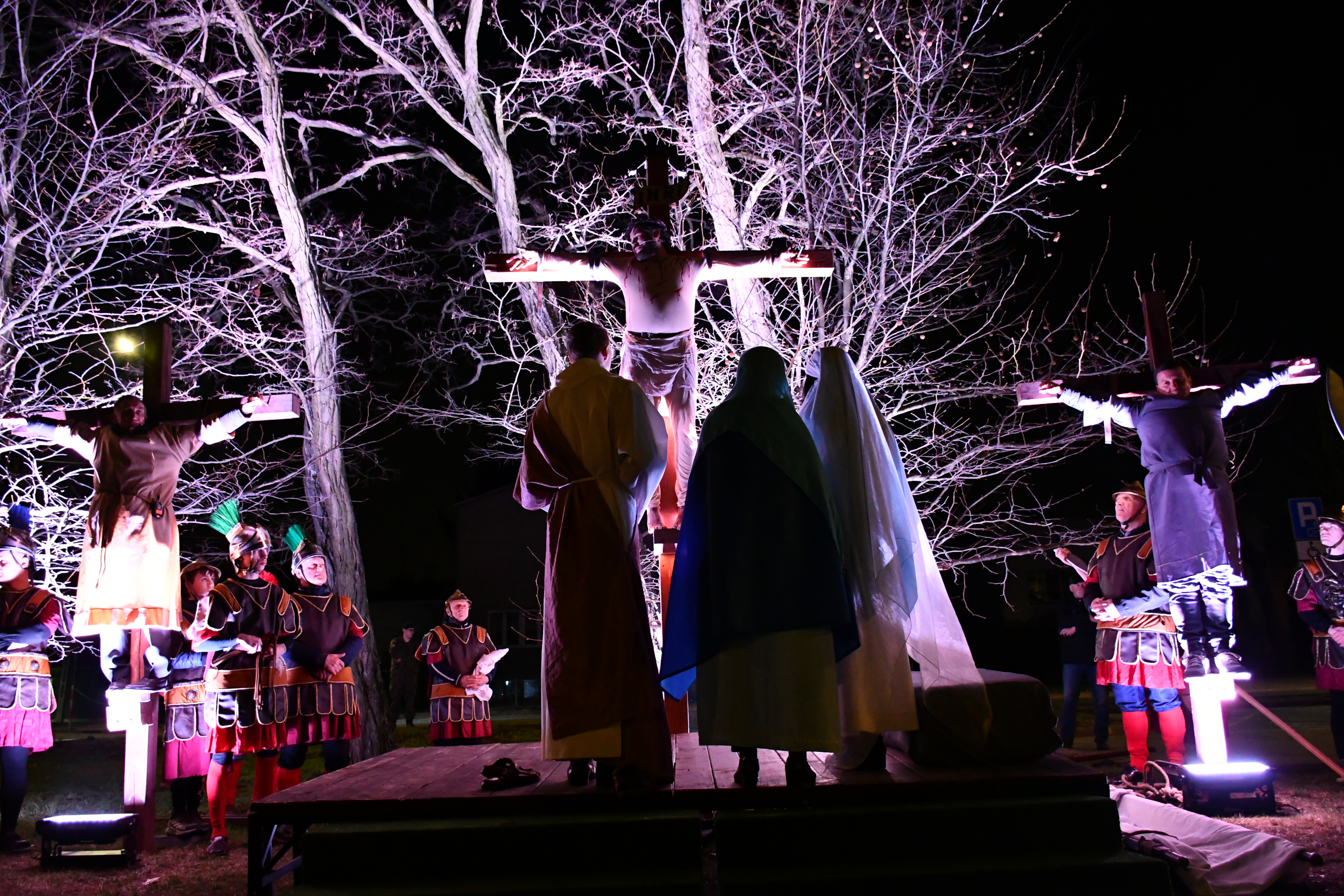 Rozważania przybrały wyjątkową formę, ponieważ modlitwa połączona była z misterium. Aktorzy z ogromnym zaangażowaniem odgrywali poszczególne sceny z Drogi Krzyżowej, co pozwoliło zgromadzonym jeszcze pełniej doświadczyć i przeżyć tajemnicę męki Chrystusa. Oglądanie tych dramatycznych wydarzeń przeniesionych bezpośrednio na ulice naszego miasta niezwykle mocno potęgowało modlitewną zadumę.